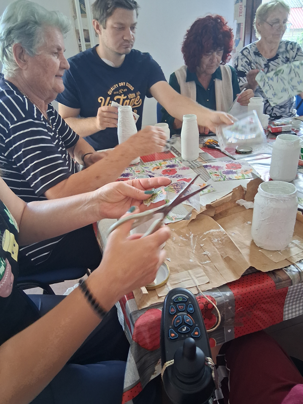Uz desetak korisnika, socijalnu radnicu, voditeljicu Kreativnice i naš mobilni tim, prostor je bio ispunjen šarenim salvetama, zanimljivim idejama i veseljem. Svaka staklenka dobila je svoj jedinstveni izgled, a zadovoljstvo na licima sudionika bio nam je najveći uspjeh.