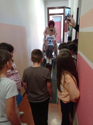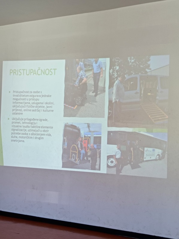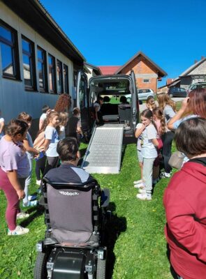Socijalna radnica Maja Tomac pripremila je prezentaciju o pristupačnosti i mobilnosti osoba s invaliditetom, s naglaskom na prepreke u svakodnevnom životu i načine na koje okolina može doprinijeti njihovom uklanjanju. Posebnu pažnju učenika privukla su pomagala za hodanje koja su mogli i sami isprobati, a puno veselja donijela je i demonstracija prilagođenog vozila – djeca su vidjela kako osoba s invaliditetom ulazi u vozilo i na koji način se osigurava tijekom vožnje.